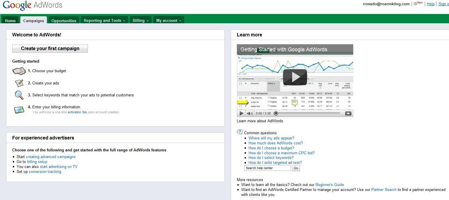 - Make sure you already have some linkage with Google so you can easily use your current Google log-in to set-up your Adwords account.