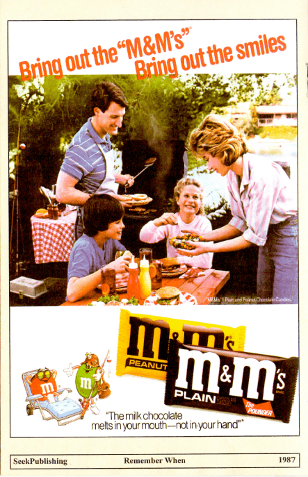 M&M’s keeps it simple here with minimal text and composition. Rare for 1987 I’d say.